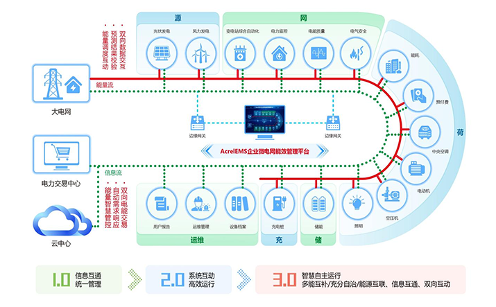 簡(jiǎn)介:1.概述 通過在源、網(wǎng)、荷、儲(chǔ)、充的各個(gè)關(guān)鍵節(jié)點(diǎn)安裝監(jiān)測(cè)、分析、保護(hù)、治理裝置, 通過高性能邊緣計(jì)算網(wǎng)關(guān)采集數(shù)據(jù)并上傳至企業(yè)微網(wǎng)平臺(tái)。平臺(tái)根據(jù)新的電網(wǎng)價(jià)格、 用電負(fù)荷、電網(wǎng)調(diào)度指令等情況,調(diào)整各系統(tǒng)控制策略并遠(yuǎn)程下發(fā),使企業(yè)微電網(wǎng)始終高效穩(wěn)定運(yùn)行, 降低企業(yè)用電成本,實(shí)現(xiàn)能源互聯(lián)、信息互動(dòng)。 2.應(yīng)用場(chǎng)所 適用于各行業(yè)企業(yè)內(nèi)部微電網(wǎng)管理系統(tǒng)的新建、擴(kuò)建、改建等項(xiàng)目。 3.平臺(tái)結(jié)構(gòu) 3.平臺(tái)功能 安科瑞AcrelEMS企業(yè)微電網(wǎng)能效管理平臺(tái)融合了電力監(jiān)控、電氣安全、照明控制、能源管控、充電樁運(yùn)營(yíng)管理、分布式光伏監(jiān)測(cè)、儲(chǔ)能管理、設(shè)備臺(tái)賬、運(yùn)維管理等功能,通過一個(gè)平臺(tái)、一個(gè)APP整體的對(duì)企業(yè)用電進(jìn)行集中監(jiān)控、統(tǒng)一調(diào)度、統(tǒng)一運(yùn)維,并且根據(jù)當(dāng)?shù)毓╇姴块T錯(cuò)峰避峰計(jì)劃提前為企業(yè)制定錯(cuò)峰避峰方案和預(yù)警,滿足企業(yè)